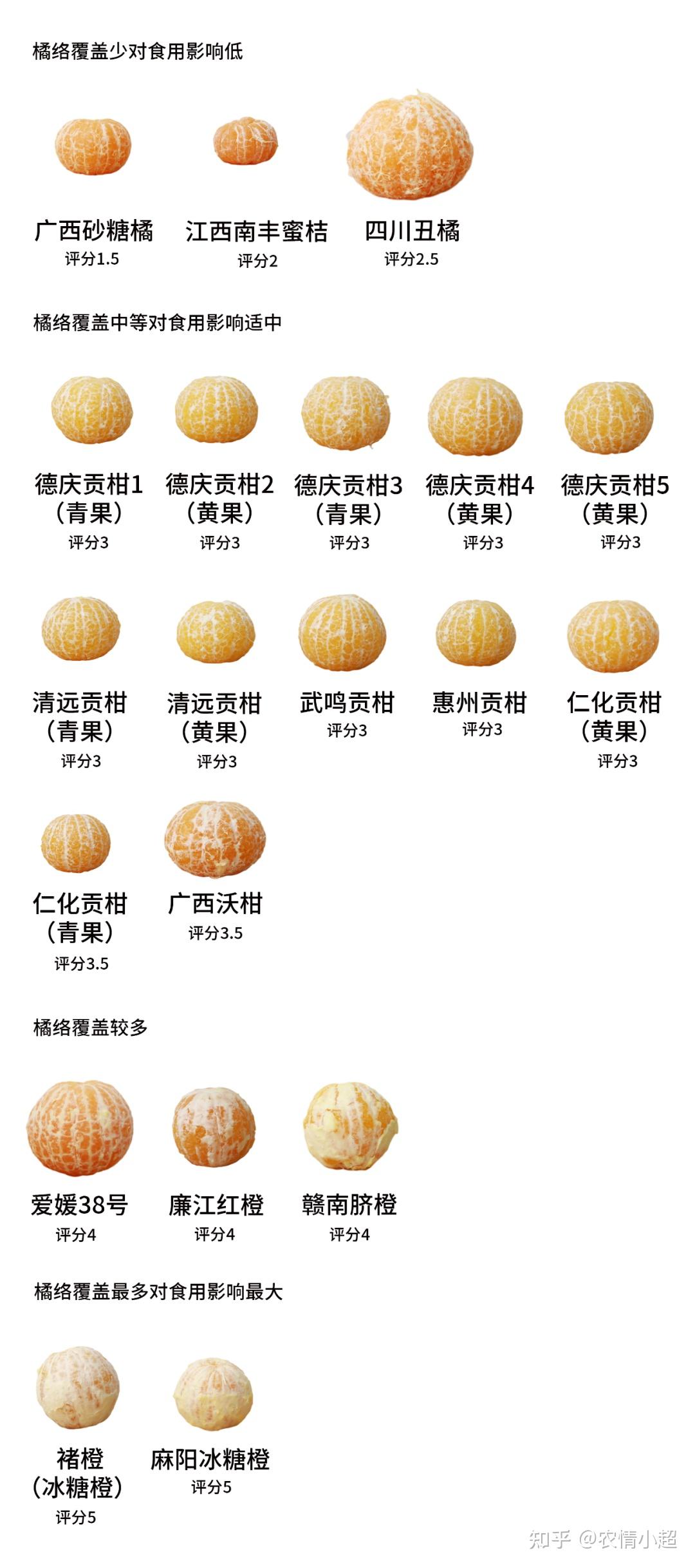 興隆貢柑5號(hào)(龍芽草)化渣性更高,比起別名“果凍橙”的石川縣38號(hào)化渣性要更高、贛南柑橘、四川丑橘化渣性優(yōu)良,果皮輕松化渣;贛南柑橘雖屬橙類,白膜籠蓋水平高,但化渣性照舊優(yōu)良,反映出其背后較好的種辦理程度。