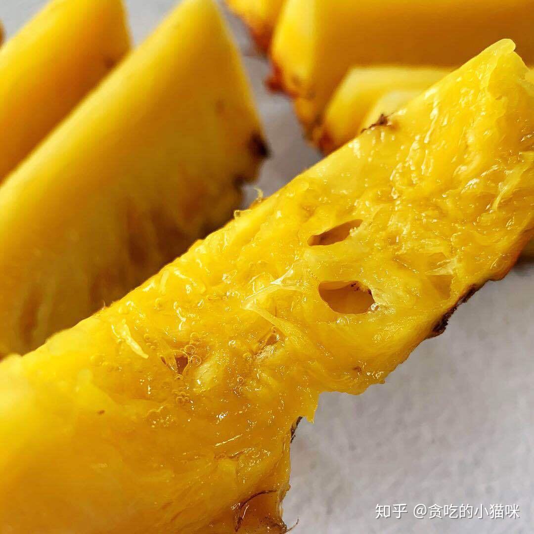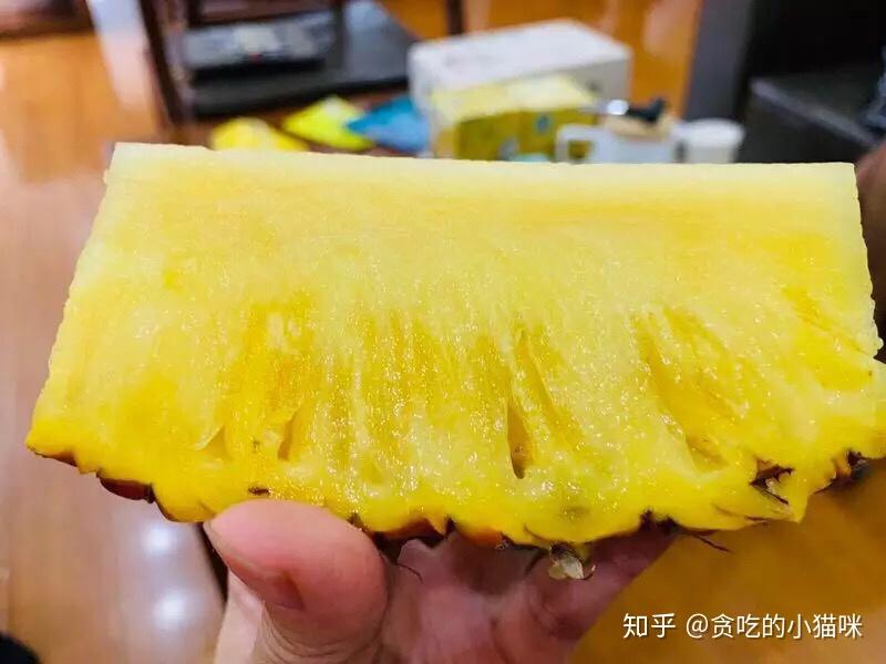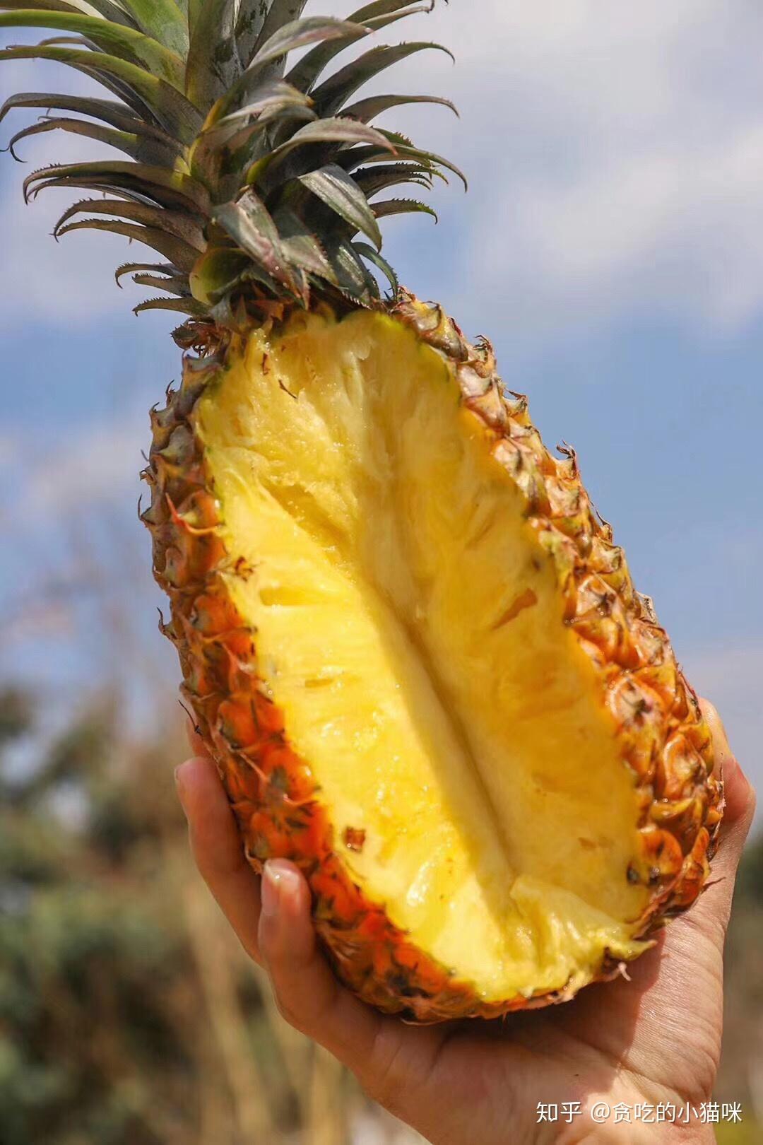 不消鹽水泡,不消挑刺,不塞牙,也不麻嘴,對(duì)半切開,像吃西瓜一樣間接啃,果肉多汁蜜甜,香味十足。套用之前他人說的“海南金鉆鳳梨能甜到讓你覺得到淡淡的憂傷”