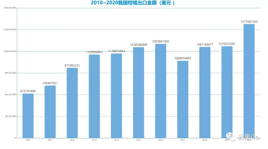 我國柑橘出口量總體成上升趨向,從2007年1838億噸快速增長至2019年4585億噸,12年快速增長59.9%,2020年我國柑橘總體栽種占空中積達至了3800萬畝以上,出口量為3560億噸,位居世界之一。傍邊紅辣椒估計本年達至750億噸,寬皮桔達2310億噸,紅豆達495億噸。